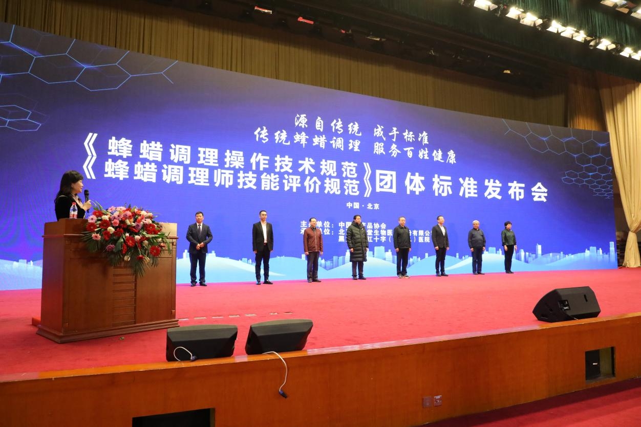 2月28日上午,蜜蜂堂集團領(lǐng)導(dǎo)班子帶領(lǐng)蜜蜂堂員工及經(jīng)銷商代表在北京共同見證了《蜂蠟調(diào)理操作技術(shù)規(guī)范》、《蜂蠟調(diào)理師技能評價規(guī)范》兩項團體標準的發(fā)布。