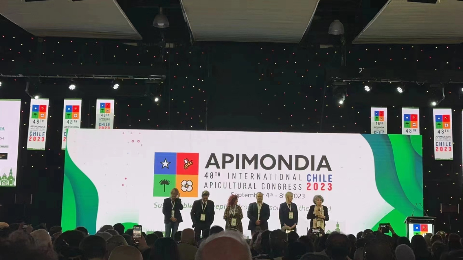 9月4日-8日,國際蜂聯(lián)(APIMONDIA) 第48屆國際養(yǎng)蜂大會暨博覽會在智利圣地亞哥舉辦。來自全球五大洲130多個國家的科學(xué)家、政府官員、企業(yè)代表、養(yǎng)蜂人等參加了世界蜂業(yè)界最大盛會。北京蜜蜂堂作為本次受邀出席單位,閃耀亮相本屆國際蜂聯(lián)大會并獲得大獎,成為本場最佳品牌之一!