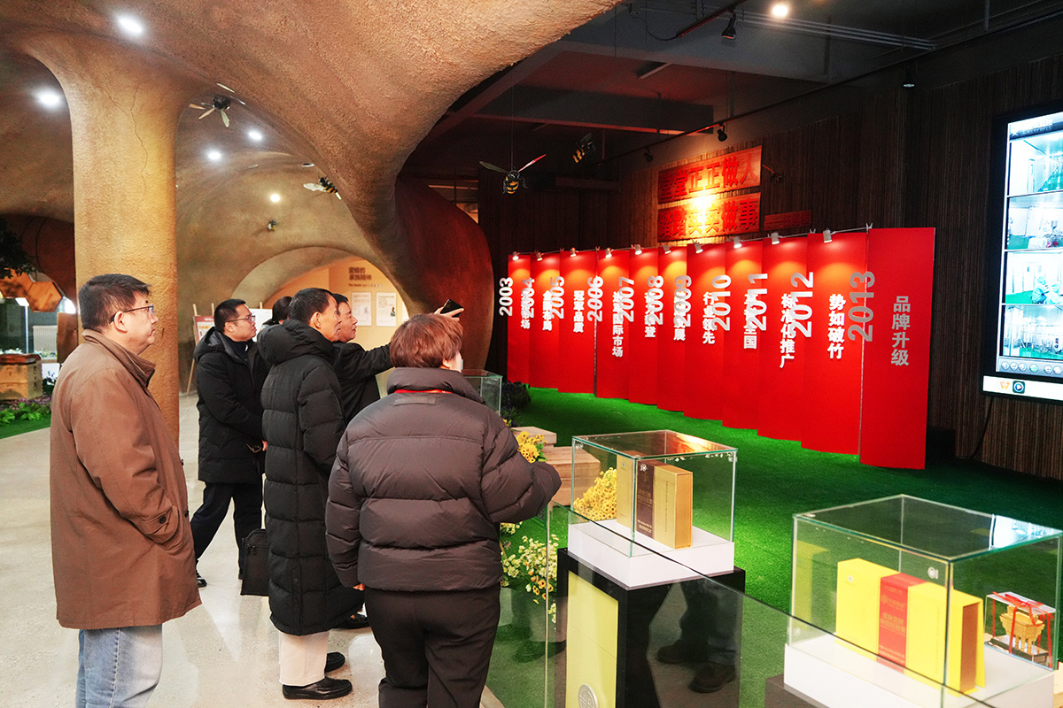 在蜜蜂堂調研期間,調研組一行聽取了??偙O(jiān)關于企業(yè)的介紹,參觀了蜜蜂堂辦公大樓、蜜蜂王國生態(tài)館,對蜜蜂堂企業(yè)文化、完善的硬件設施、標準化管理體系、生態(tài)館科普等給予高度肯定與認可。最后,領導們根據中國居民膳食營養(yǎng)特點與目前慢性病的發(fā)生發(fā)展關系及習主席提出的打造地方特色“土特產”的號召,強調蜂產品行業(yè)應著力回歸產品本身,深挖產品特點,打造特色標志產品,增加產品附加值,從而扭轉中國蜂業(yè)尤其是中國蜂蜜目前發(fā)展困局。